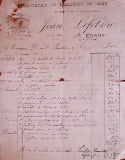 Facture de la carrière artisanale Lefebvre (1920)Immatriculation