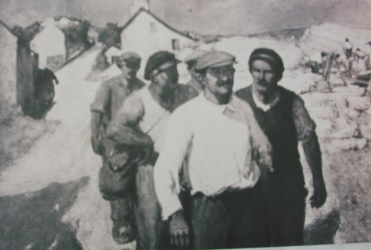 Les ouvriers de la carrière Gour : Pierre Tassel, Renault, Rault, (travail au fusain)Immatriculation