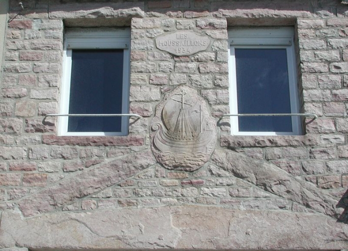 Sculpture en fronton et linteau en grès du garage Gagey sur le port d'Erquy (villa Les Moussaillons)Immatriculation