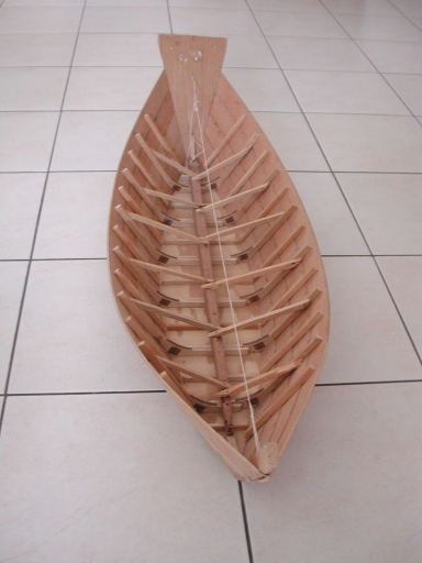 Vue du dessus d'une maquette de doris en construction (Edouard Lefèvre)Immatriculation