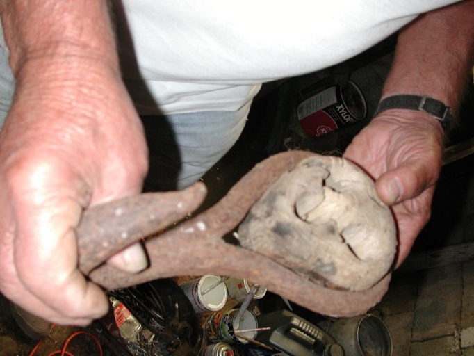 Vue de détail d'un croc de bastaque : cap de mouton ou moque et crocImmatriculation