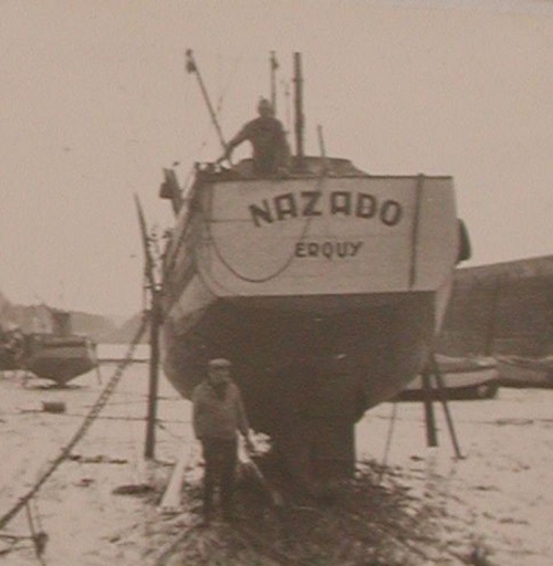 Le bateau de pêche Nazado à l'échouage dans le port d'ErquyImmatriculation