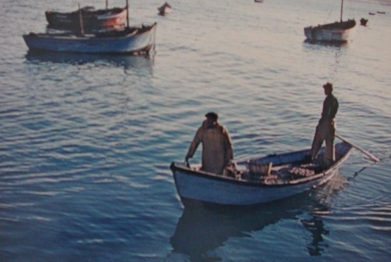 Déchargement des pêches en doris dans le port d'Erquy vers 1960Immatriculation