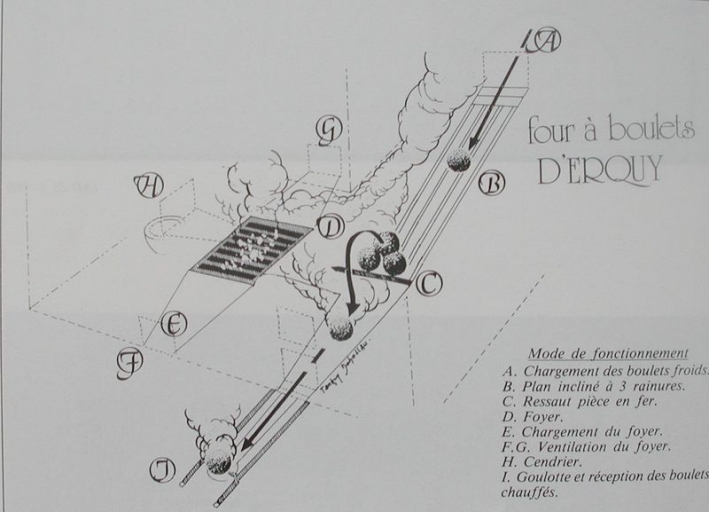 Dessin descriptif du fonctionnement four à boulets (Guy Sallier Dupin)Immatriculation