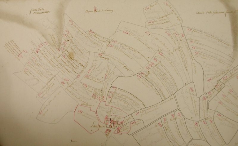 Extrait cadastre du Plan Terrier duPenthièvre, 1785 : corps de garde de Lanruen (A 610)Immatriculation