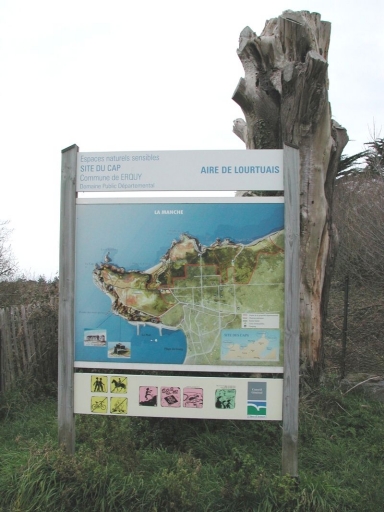 Aire de Lourtuais : panneau de signalisation et d'interprétation du Cap d'Erquy (Syndicat des Caps)Immatriculation