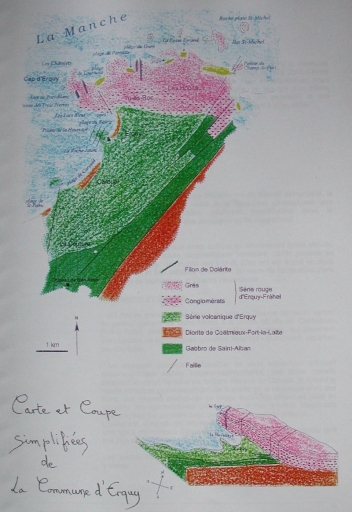 Carte et coupe simplifiée de la géologie du Cap d'Erquy (Syndicat des Caps)Immatriculation