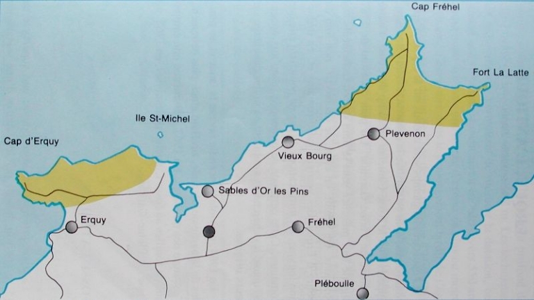 Carte des sites archéologiques de la pointe d'ErquyImmatriculation