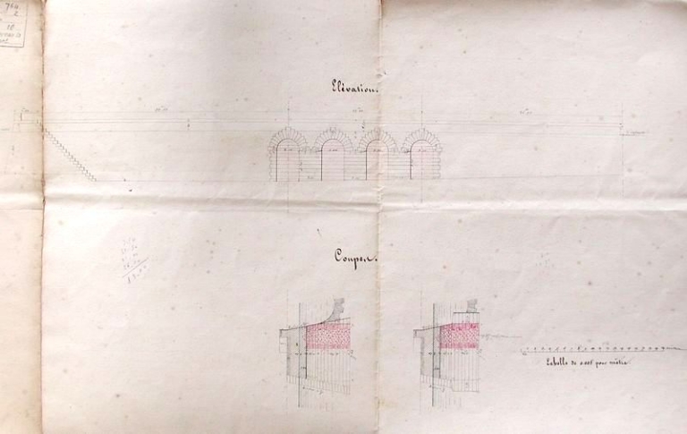 Vue de détail des arcades de la jetée d'Erquy, 1845-46 (AD 22)Immatriculation