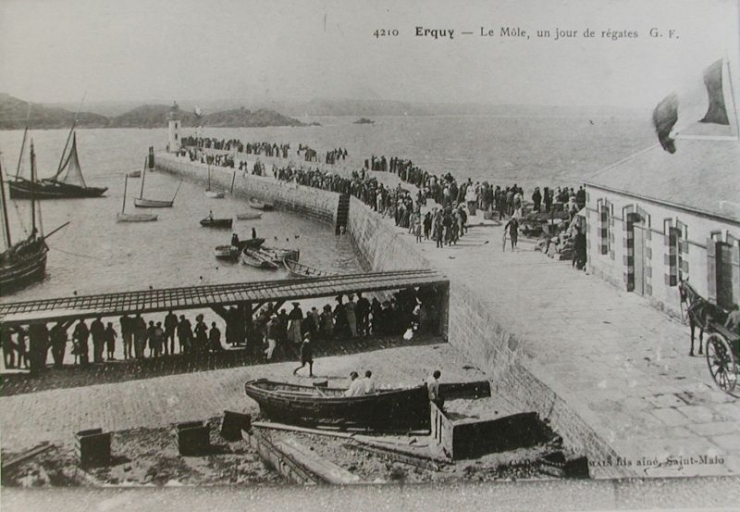 Le port d'Erquy un jour de régate (avant 1920), avec l'annexe du caboteur la Pleubaniaise au premier planImmatriculation