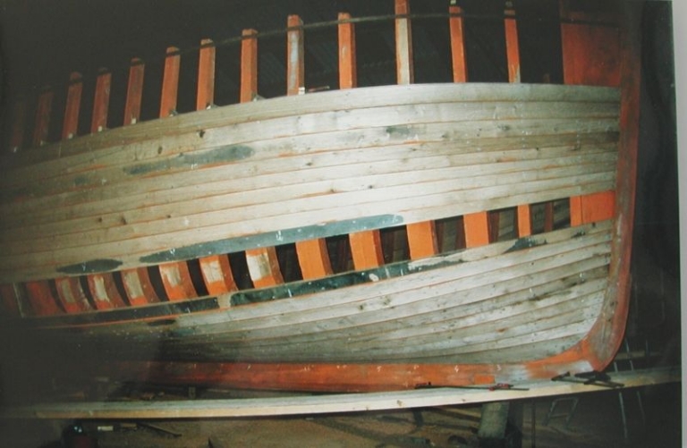 Construction de la Sainte-Jeanne : bordage en chêneImmatriculation