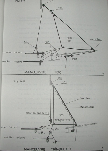 Dessin des voiles d'avant : maneuvres foc et trinquette (Bernard Le Guen)Immatriculation