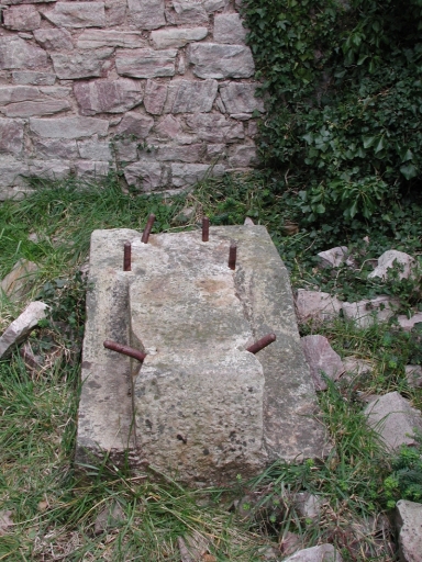 Vue de détail du support en grès taillé de l'enclumeImmatriculation