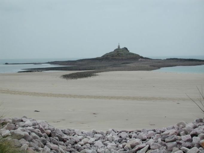 Vue générale de la chapelle Saint-Michel sur son îlot à marée basseImmatriculation