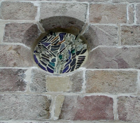 Détail d'un vitrail : occulus en pierre de verre (les ailes de saint Michel)Immatriculation