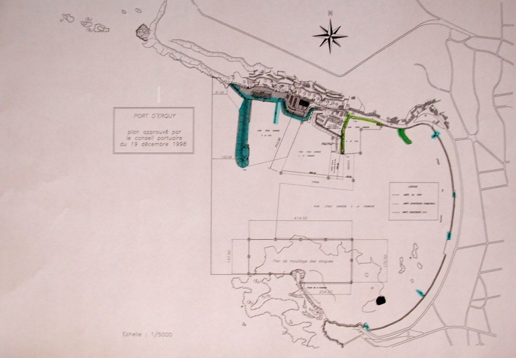 Plan du port d'Erquy : les anciens quais et les nouveaux quais et cales d'accès à la plageImmatriculation