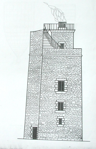 Dessin au trait de la vieille tour à feu avec le réchaud et le dessin des pierres (Fichou)Immatriculation