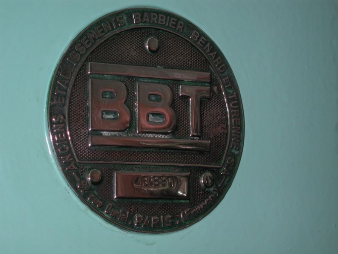 La marque des constructeurs industriels de la cuve à mercure et du système rotation du phare de Fréhel, toujours en service : Barbier, Benard et Turenne (BBT)Immatriculation