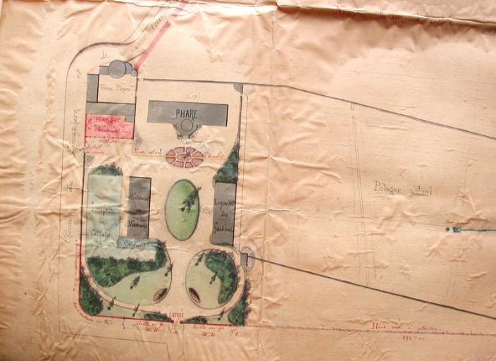 Dessin aquarellé : plan du site avec le chemin du sémaphore et de la trompette à vapeur, 1885 par Cadin (AD 22)Immatriculation
