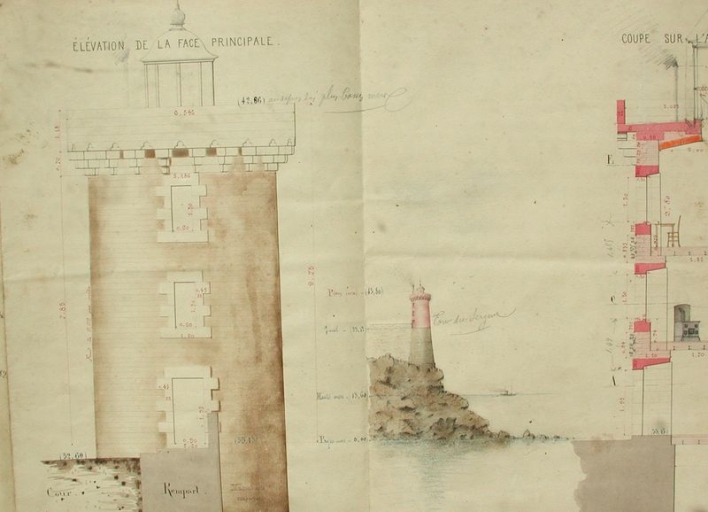 Projet de phare en 1882 à Fort-La-Latte : élévation de la face principale (AD 22)Immatriculation