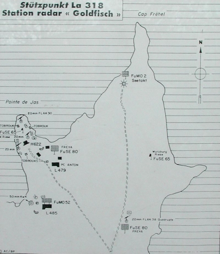 Plan de situation des stations de radar Goldfisch sur le site du cap Fréhel (collection particulière)Immatriculation