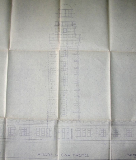 Dessin calque : plan de la face postérieure nord du nouveau phare de Fréhel, avril 1946, par Yves Hémar, architecte (DDE 22)Immatriculation