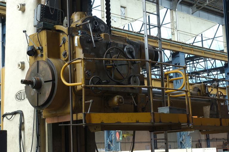 Vue de la halle d'usinage : aléseuse Malf Asquith, cabine du conducteurImmatriculation