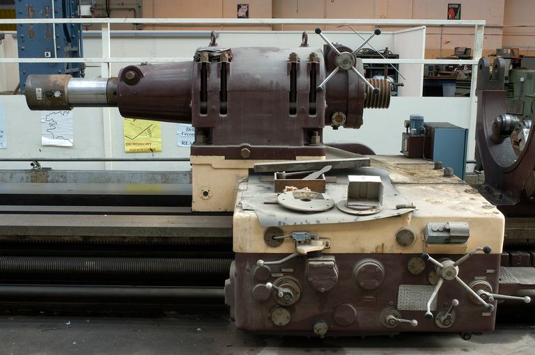 Vue de la halle d'usinage : tour Somua, détail (1957)Immatriculation