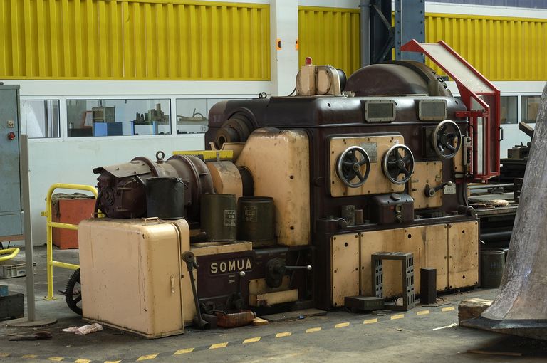 Vue de la halle d'usinage : tour Somua, détail (1957)Immatriculation