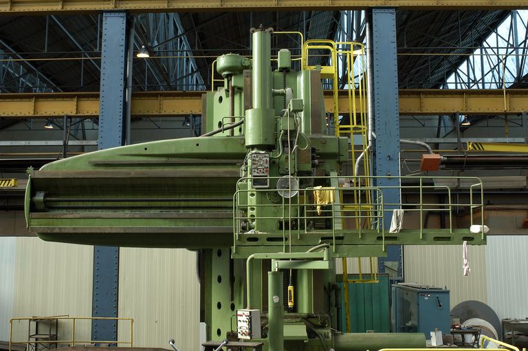 Vue de la halle d'usinage : détail de la partie haute du tour vertical Berthiez (1953)Immatriculation