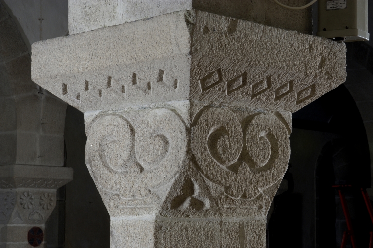 Locunolé, église paroissiale Saint-Guénolé : nef, chapiteau 5, état en 2004Immatriculation