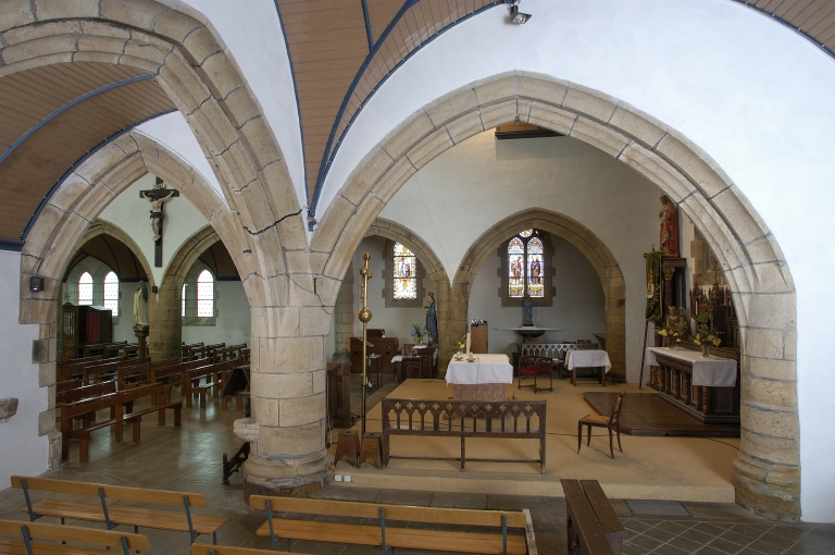 Rédené, église paroissiale Notre-Dame-de-Lorette : intérieur, vue depuis la chapelle sud vers le choeur et bas-côté nord, état en 2004Immatriculation