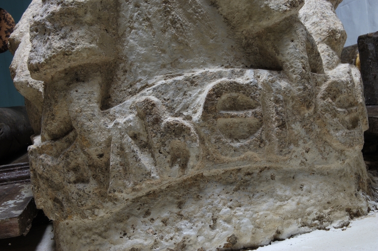 Choeur, côté sud, support sculpté, inscriptionImmatriculation
