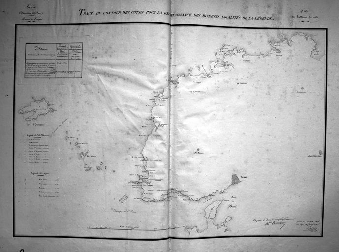 Atlas des batteries de côte, tracé du contour des côtes pour la reconnaissance des diverses localités de la légende, Génie, Direction de Brest, 1891Immatriculation