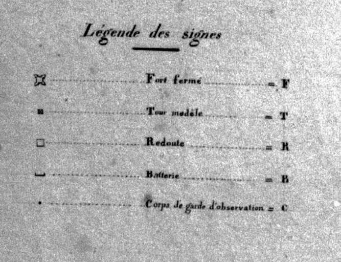 Atlas des batteries de côte, légende, tracé du contour des côtes pour la reconnaissance des diverses localités de la légende, Génie, Direction de Brest, 1891Immatriculation