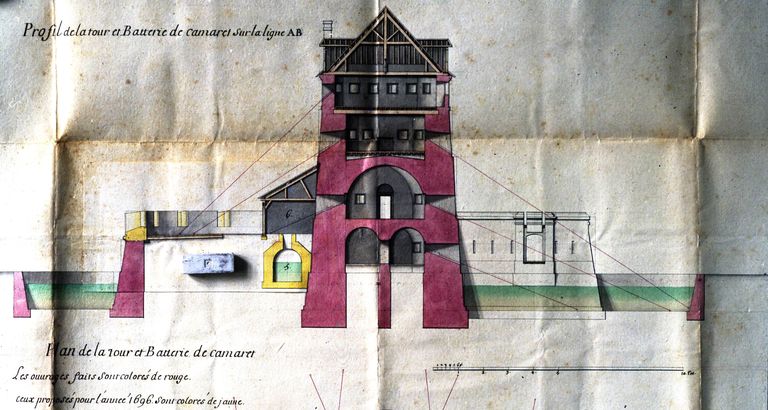 Profil de la tour et batterie de Camaret, fait à Brest par Traverse le 24 janvier 1696, signé par VaubanImmatriculation