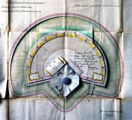 Plan de la tour et batterie de Camaret, fait à Brest par Traverse le 24 janvier 1696, signé par VaubanImmatriculation
