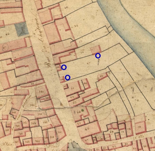 Emplacement des vestiges sur fond du cadastre de 1824Immatriculation