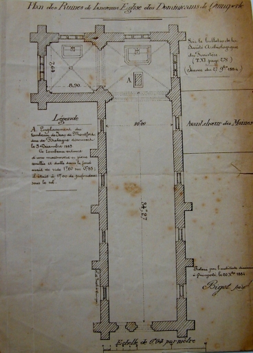 Plan des ruines de l'ancienne église par Joseph Bigot, 1884 (A.E. Quimper)Immatriculation