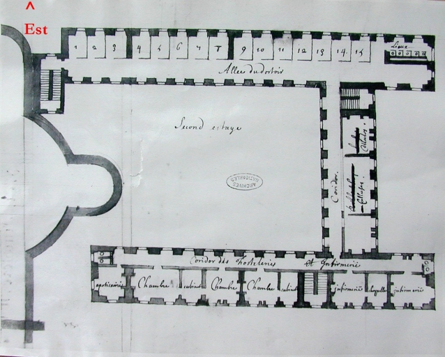 Projet de reconstruction des bâtiments conventuels, second étage, 1664 (A.D. Finistère, 1 J 821)Immatriculation