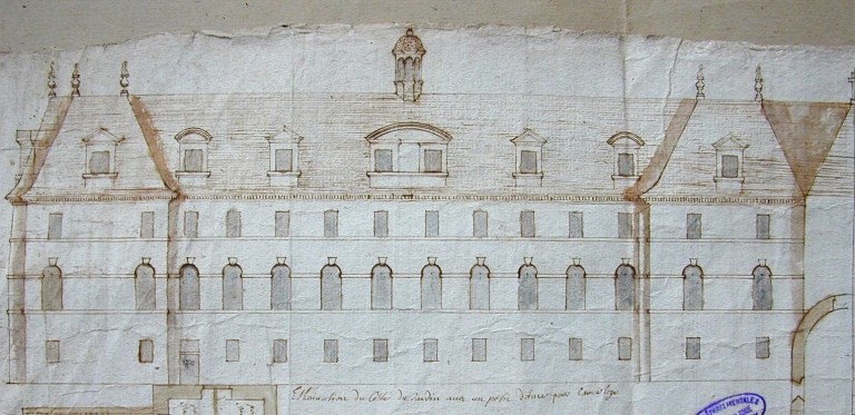 Projet de reconstruction partielle, vers 1676. Aile est, élévation est, projet non réalisé (A.D. Finistère, 5 H 58)Immatriculation