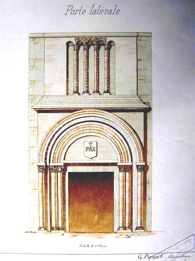 Porte nord-ouest après restauration. Dessin Gustave ou Joseph Bigot, vers 1868 (A.E. Quimper, Fonds Bigot)Immatriculation