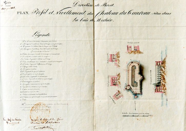 Plan de la terrasse et coupes du fort, Génie, Direction de Brest, 1818Immatriculation