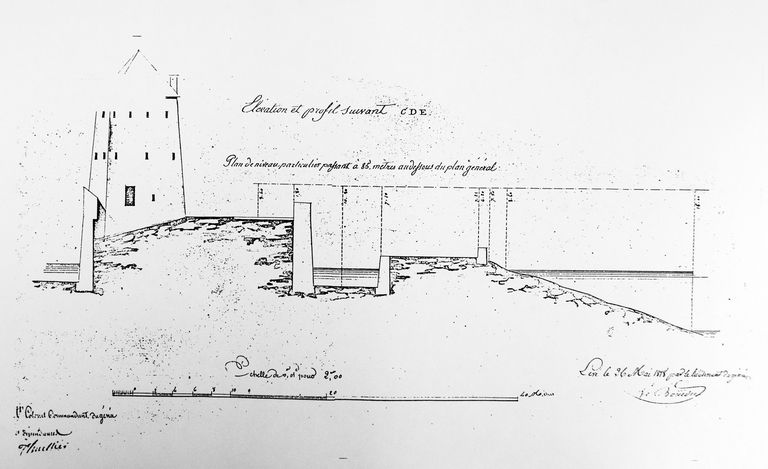Elévation et et profil suivant C-D-E, Génie, 1818Immatriculation