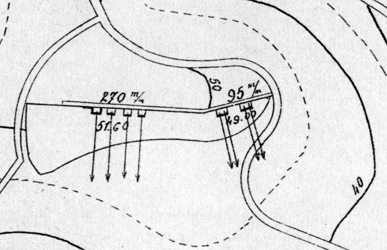Extrait du plan de situation des batteries de Bertheaume (270 mm et 95 mm), Atlas des batteries de côte : côte de Brest, 1913, VincennesImmatriculation