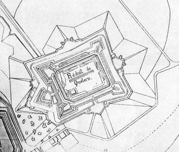 Détail du plan de situation des lignes et du réduit de Quélern : réduit, Atlas des batteries de côte : côte de Brest, 1893, VincennesImmatriculation
