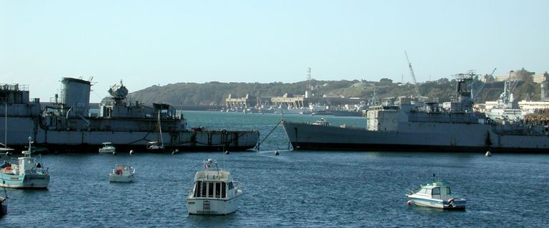 Vue générale de la base de sous-marins depuis le port de commerce en 2004Immatriculation