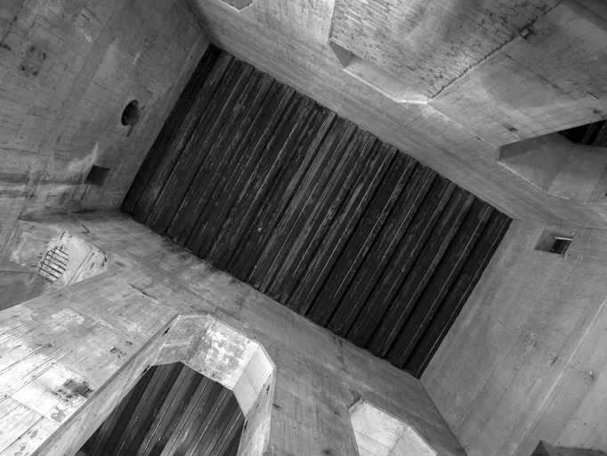 Vue intérieure de la base de sous-marins : détail montrant la hauteur importante des plafonds (2004)Immatriculation