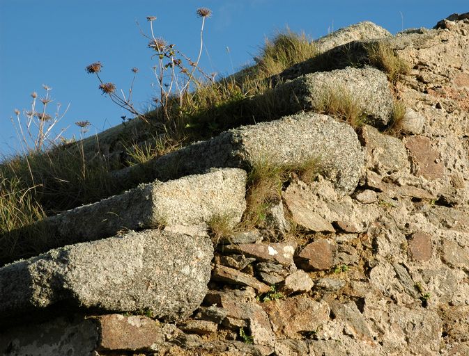 Détail de la toiture en granite du corps de gardeImmatriculation