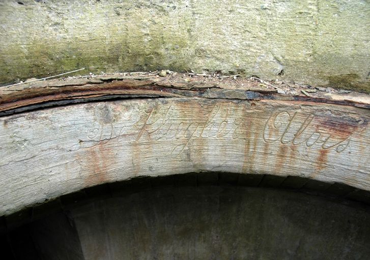 Vue de l'inscription gravée dans le béton (état en 2004)Immatriculation